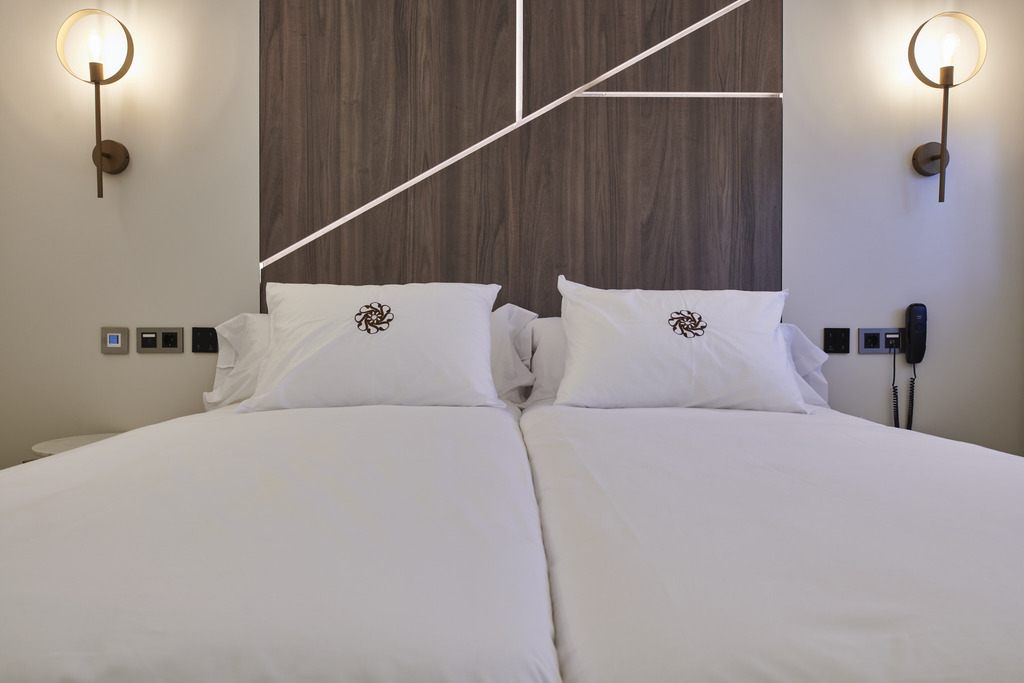 60 habitaciones con una decoración moderna y elegante. 4 habitaciones están comunicadas posibilitando la estancia de familias numerosas. Pantallas plana HDTV de 43” +wifi gratis. Secador de pelo y amenities incluidos.