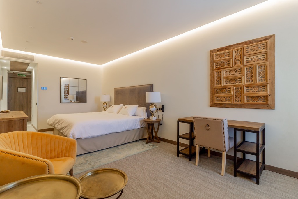 2 habitaciones de + 50 m2 para una estancia especial, 2 espacios independientes con salón y dormitorio. 2 pantallas planas HDTV de 43” y 55” + wifi gratis. Cama King Size de 2*2 m. wifi + minibar. Secador de pelo y amenities incluidos.